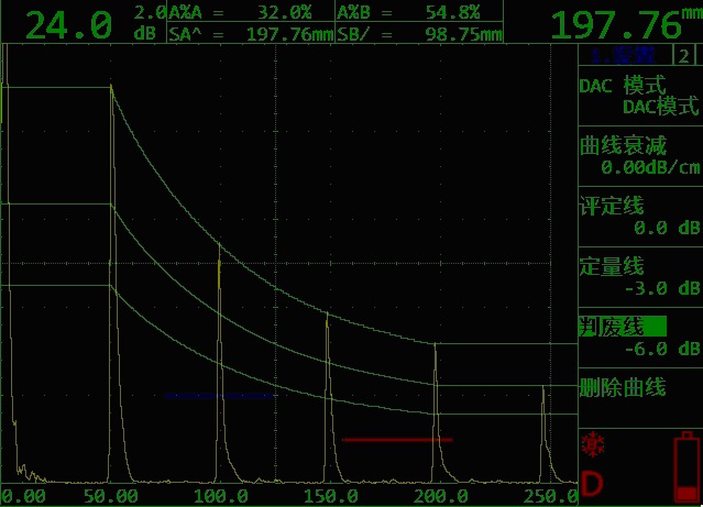 缺陷定量:實(shí)顯SL定量值(DAC曲線(xiàn)實(shí)時(shí)定量);