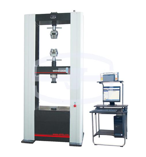該機采用雙空間門式結構,標準為上空間拉伸,下空間壓縮、彎曲,拉壓空間可相互轉換。主機部分由四根導向立柱、上橫梁、中橫梁、工作臺組成落地式框架,調速系統安裝在工作臺下部。由調速精度高、范圍寬、性能穩定的日本松下交流伺服電機通過同步齒形帶減速系統帶動滾珠絲杠副旋轉,滾珠絲杠副驅動中橫梁,帶動拉伸輔具(或壓縮、彎曲等輔具)上下移動,實現試樣的加荷與卸載。該結構保證機架有足夠的剛度,同時實現高效、平穩傳動。主機主要零部件在加工中心進行加工,保證了主機的精度。滾珠絲杠為E5級。